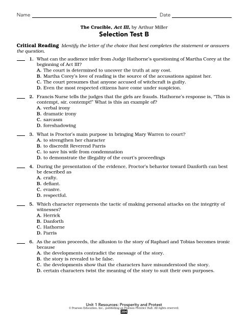 Act Three The Crucible The Crucible Act 3 Please Answer All Questions In Complete Sentences Type Your Answers In Red 1 Describe The Questioning Of Course Hero